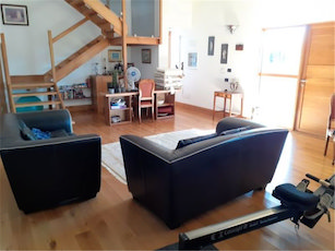 Central heating by thermostatically controlled radiators throughout serviced by a biomass boiler that can be fuelled by wood or hopper fed pellets. Chuck in rubbish and warm the house