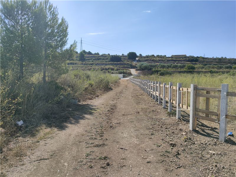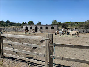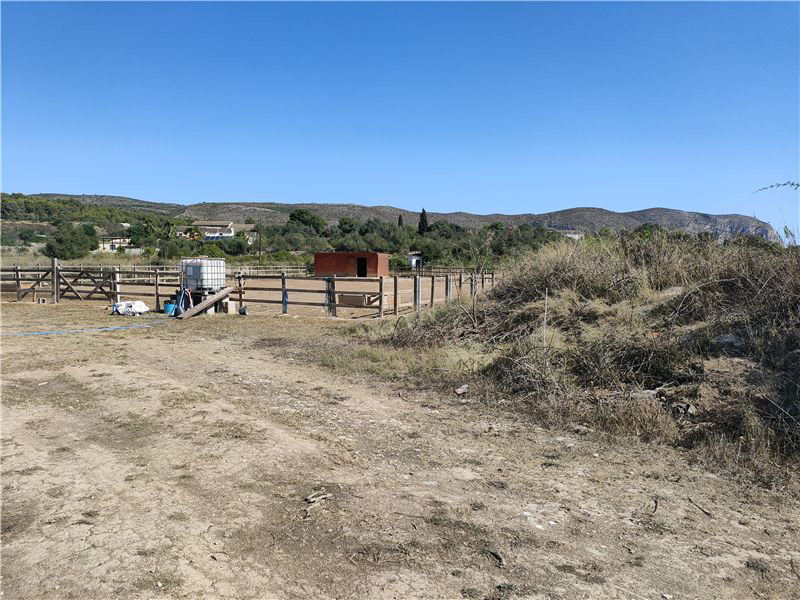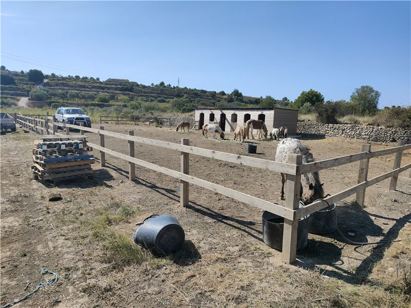 Large flat building plot with potential to build a house of upto 420m2 villa. Has existing small of grid dwelling, stables and paddocks. fantastic location 5 minutes drive to motorway that has