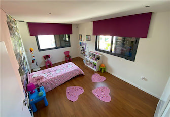 On the ground floor there is a fully equipped open space kitchen, spacious living & dinning open space areas with large sliding doors to the pool and garden.