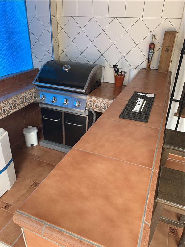 Property description..large lounge dining room with wood burner stove with door to large covered terrace with kitchen barbecue..3 double bedrooms, 1 with en-suite, second bathroom with shower..modern kitchen with silestone worktops, 5 ring gas hob and built in oven, dishwasher, washing machine and fridge freezer..