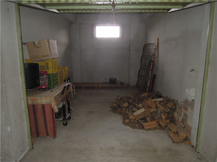 This apartment comes with a full sized garage, located in the basement of the building and currently being used for storing wood.
