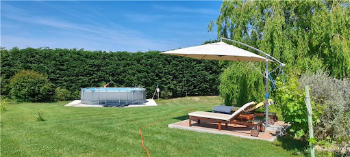 The half acre of outside space is a real asset to the home. The large mature garden with olive and fruit trees, lawns, herb gardens and a selection of seating areas is the ideal spot to enjoy the tranquility of the countryside. The garden has been tastefully and thoughtfully managed to provide a comfortable pergola area for dining al fresco. There is a pizza oven at the pergola and a patio area overlooking the swimming pool to enjoy the weather and views from the privacy of your own gardens. The pool is above ground and included in the sale