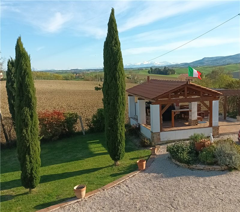 PRICE REDUCTION - This is a desirable restored detached farmhouse sitting in 0.5 acre of beautiful gardens with panoramic views to Monte San Vicino and the Sibillini mountains. The property is on a no-through road and is surrounded by fields growing sunflowers and grain. You will be close to many restaurants, agriturismo and vineyards which showcase Le Marche excellence in food and drink, not forgetting this area is the home of Verdicchio wineLocated in the countryside yet the house is only 25 minutes from Ancona airport which offers direct flights to London Stansted and Gatwick, Brussels, Barcelona, Munich, Dusseldorf and Paris. The house would make a beautiful 2nd home or holiday rental.