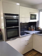 Separated from the living area by a useful breakfast bar, the GALLEY KITCHEN houses all the high quality appliances you could need! These include a Double Electric Oven, Halogen Hob with integrated Extractor, integrated Microwave, Filter Tap and slimline Dishwasher. These are all housed in sleek, cream gloss units, offering plenty of storage space, topped off with grey Corian worksurfaces.