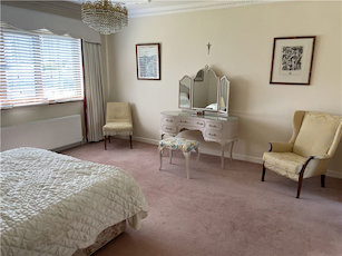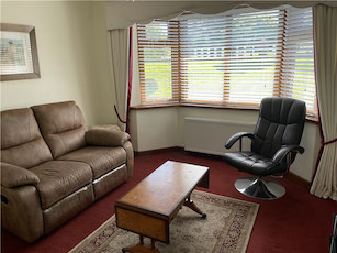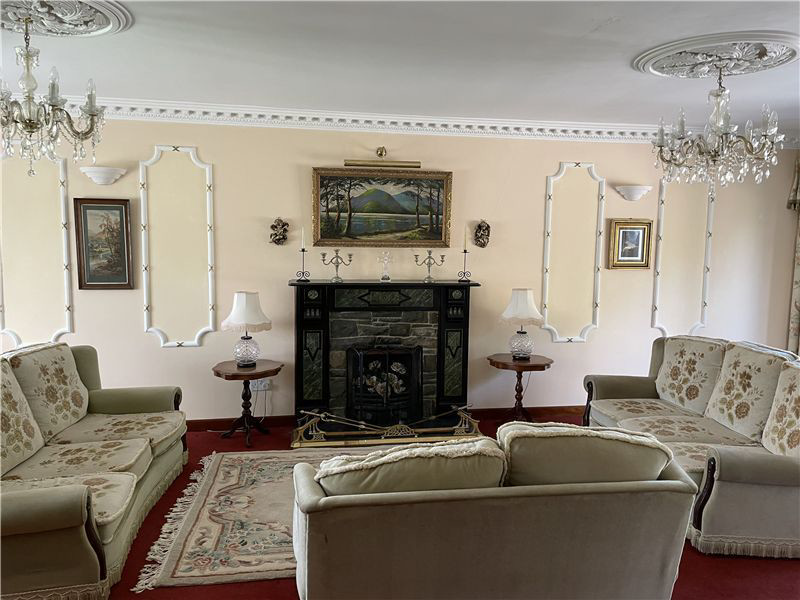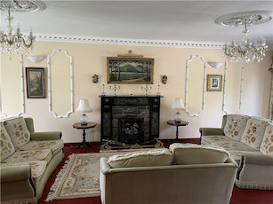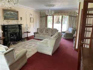 Large, double aspect reception room with open fire