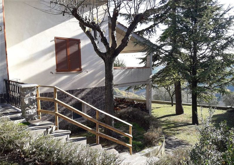 Villino singolo ubicato in posizione molto panoramica, riservata e tranquilla, ma non troppo isolata. L'abitazione è disposta su tre piani: -al piano terra presenti locali deposito e garage di tot. 130 mq; -al piano primo si trova l'abitazione con ingresso, soggiorno con camino e accesso a terrazza di 20 mq, tinello cucina, tre camere (di cui una con balcone) e un bagno, per tot. 130 mq; -al piano secondo soffitta di 130 mq quasi totalmente calpestabile, accessibile con scala da appartamento sottostante. L'immobile è circondato da ca. 800 mq di giardino privato e da pavimentazione in porfido. PREZZO TRATTABILE