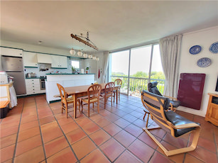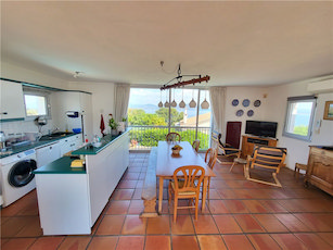 At its heart, the property features a large, welcoming kitchen and dining area of about 35m2. This versatile space is designed for modern living, offering an open plan layout that maximizes the flow of natural light and opens out onto the villa's outdoor spaces, all while providing a captivating sea view.