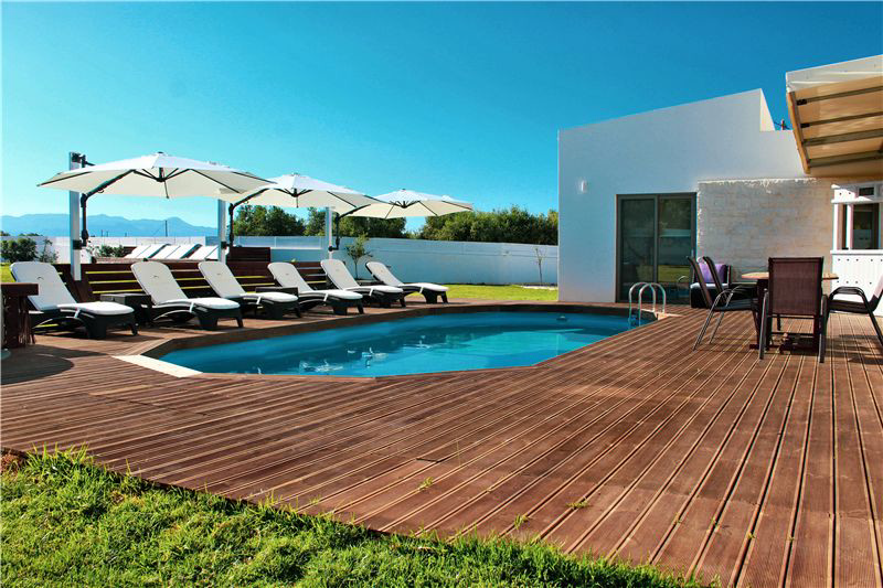 Each house is provided with a private pool and a Jacuzzi. The oval shaped pools are surrounded by wooden decking providing plenty of space for sun loungers and outdoor furniture.