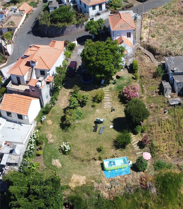 This sympathetically reformed traditional Madeirense house sits in the corner of a large south facing plot. Approval for building on the land has been granted. Access to the garden is via a 5 metre wide entrance onto a large and most importantly, level parking area for at least six cars. The driveway extends the length of the plot. There is an unobstructed sea view from the garden, where a larger house could be built.The existing house has two bedrooms, a lounge, dining room and kitchen. There are two bathrooms, one upstairs and one downstairs as well as a workshop and utility area.