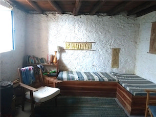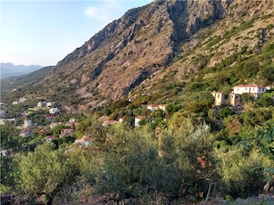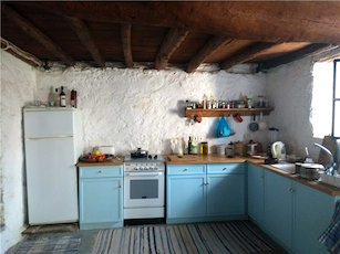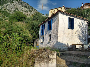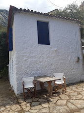 The property is a traditional stone house in the village of Kato Verga, on the slopes of Mount Taygetos, 5 miles from the centre of the vibrant city of Kalamata.The house, painted in the traditional white with blue shutters, was built in the early 1950s, with vast cypress beams downstairs, and a bamboo roof in the main bedroom. There are two bedrooms on the first floor, with plenty of space in the master bedroom for a reading/work area. The second bedroom is smaller and was built more recently. There is a small sheltered verandah area outside the bedrooms, which is useful when it is windy.