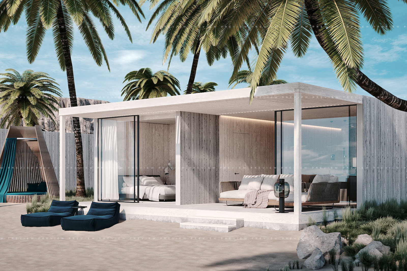 - Beach location
