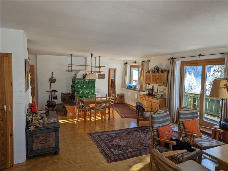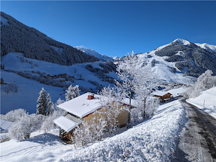 A traditional four-bedroom chalet located in a very secluded location with panoramic, unspoiled mountain views. Sitting on a plot of over 800 m² with a small stream running past. The house boasts a very tranquil and undisturbed presence. The slopes are located only 200m away and in good conditions, it is possible to ski down to the chalet. The chalet itself offers 141 m² of living space, four bedrooms, two bathrooms, 2 WCs and an open-plan dining and living area with a separate kitchen and a tiled stove. The living area opens onto a large balcony with south-facing/sunny views over the entire valley. There are also 2 terraces and a private parking area.