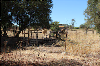 There are then gates that lead to a 6,159m2 partially fenced plot of rustic land. On this plot you will find a 24m2 mobile home, large original well, fenced enclosure for animals and another building ready to renovate for a summer house/storage and several trees including olive,orange, loquat pear ,apple,almond,fig lemon and some grape vines.