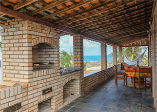 Largas varandas cobertas rodam a casa a três lados, perfeitas par descansar numa espreguiçadeira ou uma rede, almoçar ou tomar um drinque, ou simplesmente relaxar e apreciar a vista e a brisa do mar. A churrasqueira grande, de tijolo, é coberto e tem a sua própria banca de serviço e pia. O jardim, com uma piscina e chuveiros, tem gramados, coqueiros, e plantas tropicais. A garagem inclui um amplo espaço para armazenamento.