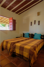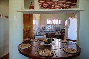 Individually designed, the three bedroom house is equipped with locally made hardwood furniture, and a stunning jacaranda circular table to seat six. The kitchen has granite work surfaces, a cooker, washing machine, fridge and electric water cooler. The bedrooms have handmade beds, bedside tables, and fitted cupboards. Bathrooms have hot showers.