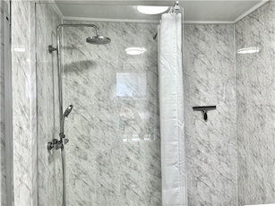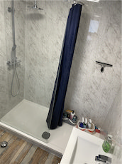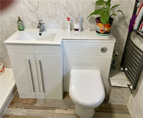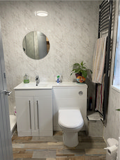 Bathroom/WC has modern White suite fitted with walk in power shower and bathroom fitments.