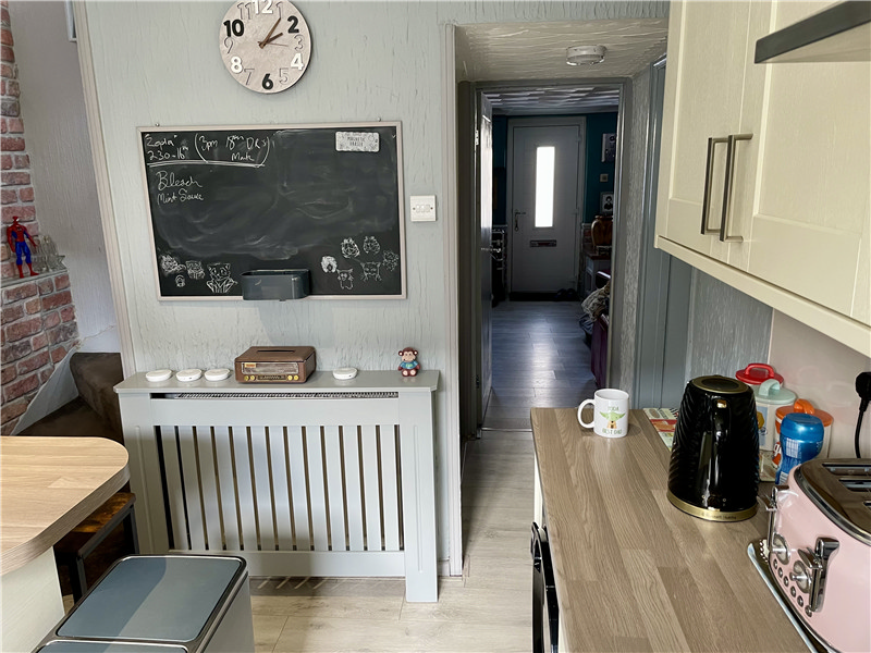 The lounge has UPVC windows and Composite entrance door, dado rail, fitted meter cupboard, artesian ceiling with coving, fitted inset electric fire place.