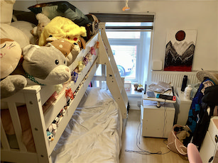 Bedroom 2 Laminated Wood Flooring and Artex Ceiling.