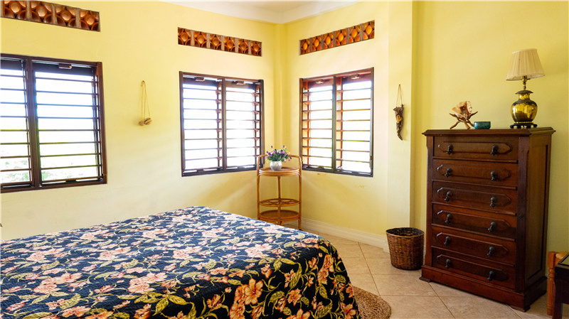 The Master bedroom has a queen bed and an infinity view of the reef beyond. Three additional bedrooms, plus multipurpose room/at home office off the pool or downstairs.