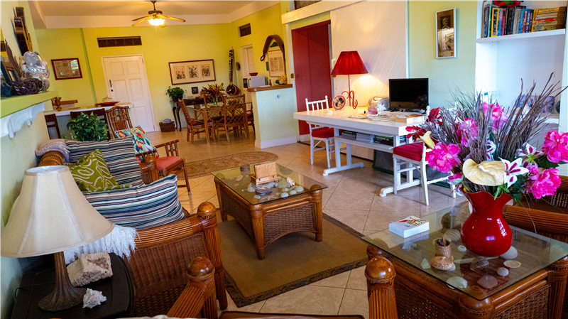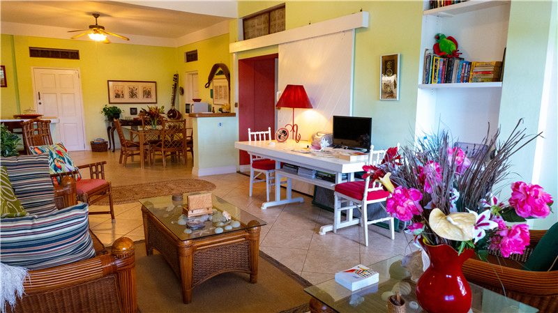 Arawak Room: Bedroom & Bath off Pool: 10'2"x26'6" At Home Office/Multi use room,