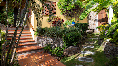 Our home is a tropical retreat located on .5 acres plus, 23,540 square feet/ 2157square meters of gently sloping gardens leading to the sea.