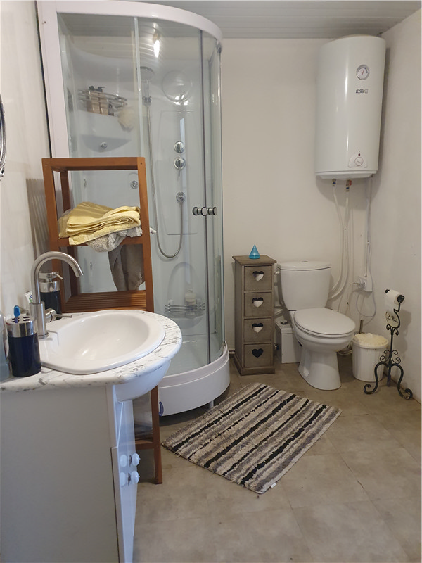 Toilet with a new macerator, which is serviced by a cesspit in the garden. A Graf Easy One microstation is included in the sale price, but not fitted. Purchase price was 6k euros. Planning permission is valid until around October 2025.