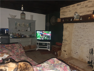 It benefits from a beautiful and unique stone and brick fireplace, with exposed stone chimney breast above a large wooden mantle. Exposed wooden beams and timbers.