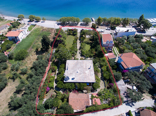 This striking beachfront villa in Psathopyrgos, Achaia offers an exclusive lifestyle on a sprawling 2,845 m² plot.The main villa provides approximately 165 m² of well-designed living space featuring 3 tastefully appointed bedrooms, 2 immaculate bathrooms, and a spacious reception area and a living room that creates a welcoming environment. Expansive verandas connect the interior with lush, meticulously landscaped gardens filled with Mediterranean plants and flowering trees, ensuring a serene oasis by the sea.