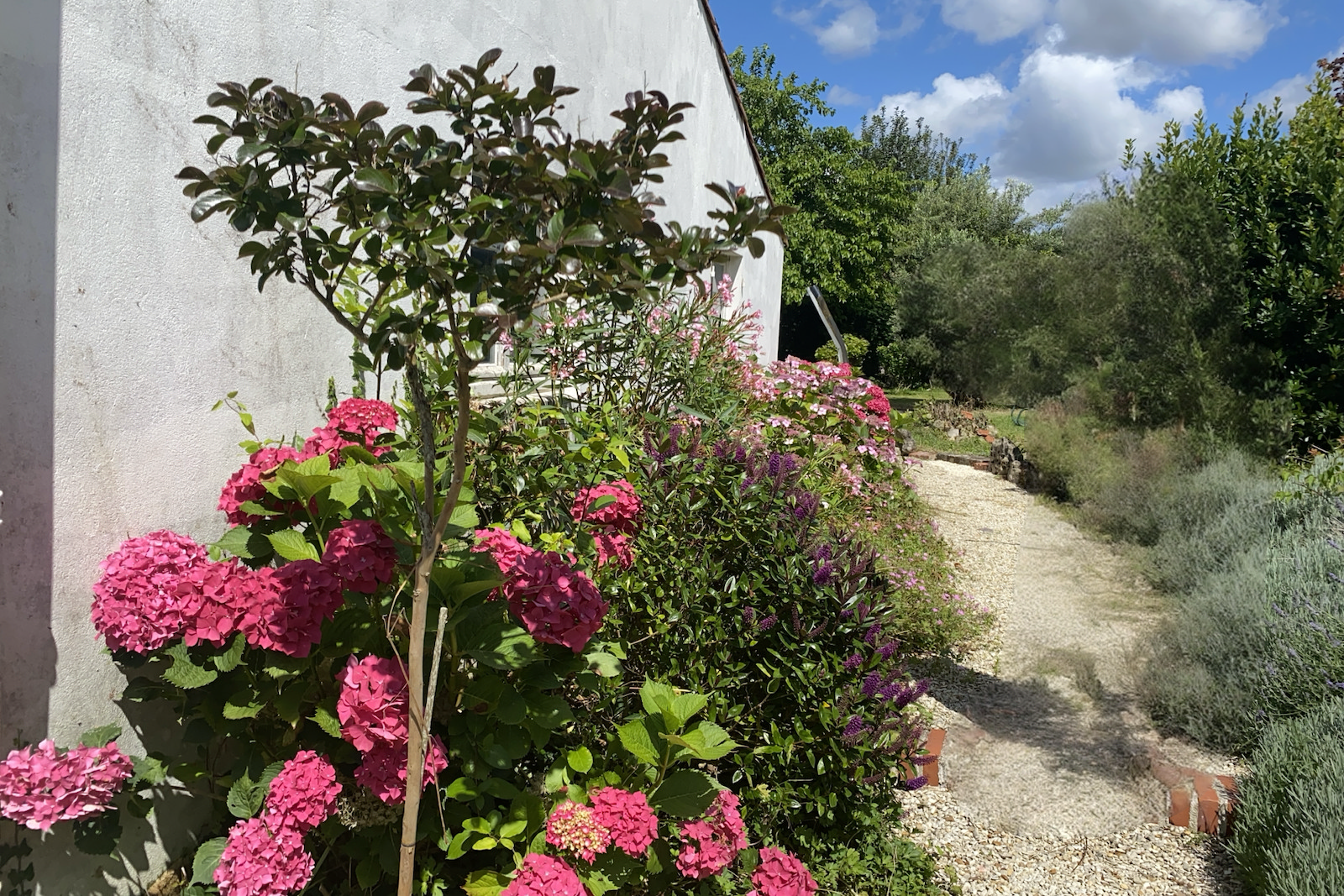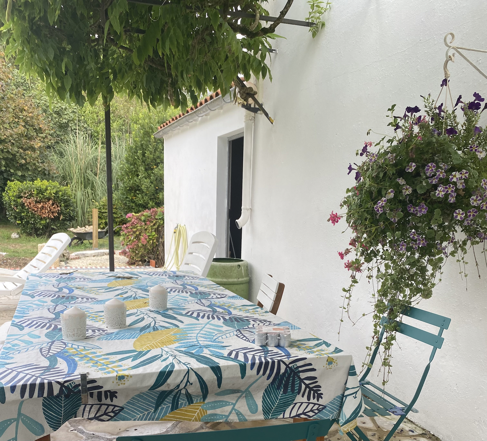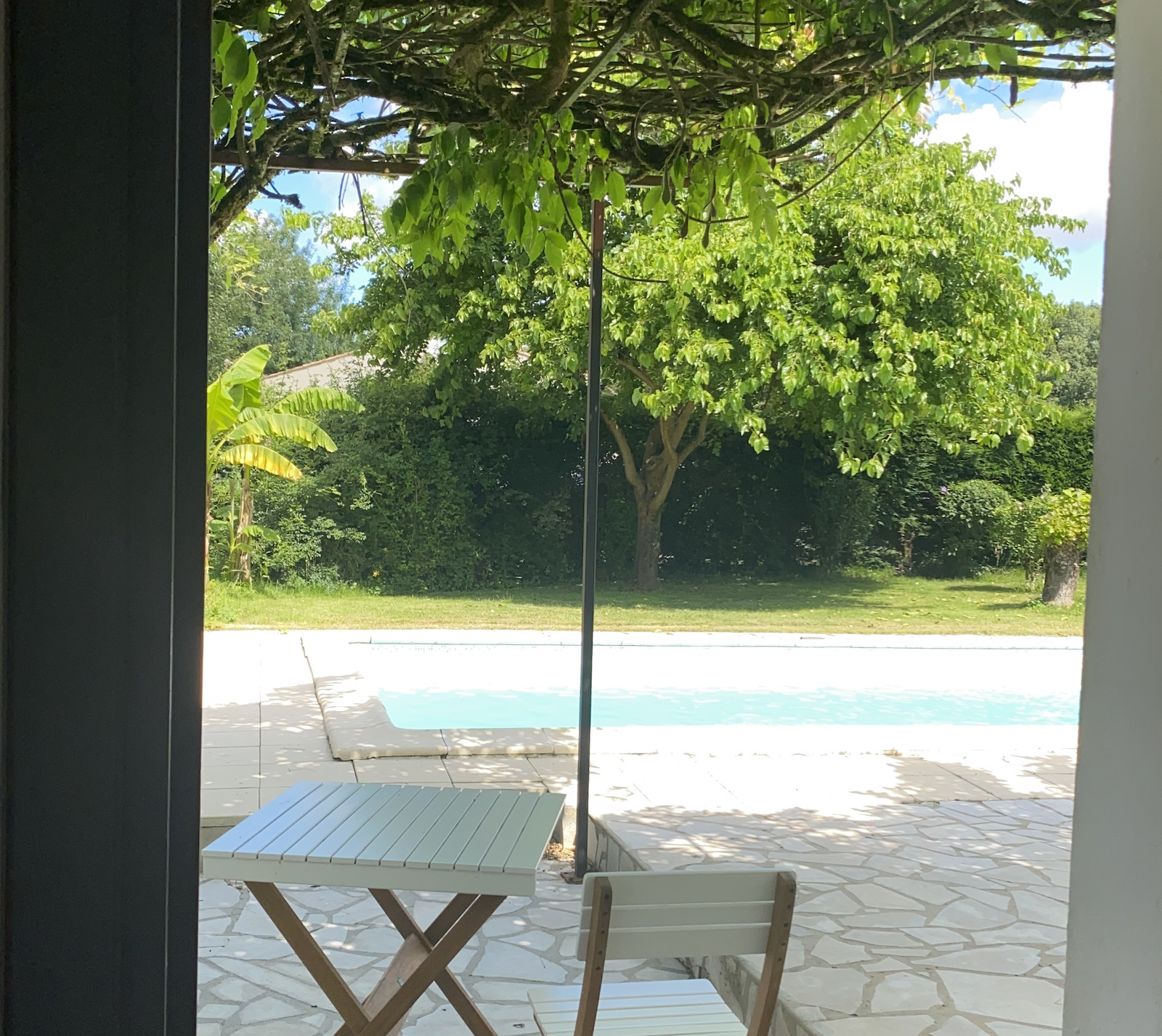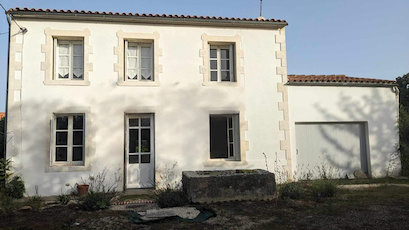 This two storey house is set in a quiet hamlet amid rolling countryside with fields of sunflowers and wheat nearby. The house itself is full of character . Downstairs there is a large hall, a kitchen/ dining room , a sitting room, utility, shower room and WC. Upstairs there are two large bedrooms, a smaller single bedroom, large landing with linen closet and WC. Outside to the rear is a wisteria covered patio , a 8’ X 4’ in ground pool which was newly lined in 2024. There is also a pool house and large storage shed. The garden is large with many trees ( fig, olive) and shrubs- lavender, rhododendron, banana plants. It is in a small hamlet of houses just a kilometre from Lidl and Super U and 1.5 kilometres from the town of Gemozac with its many bakeries and restaurants.It is 20 minutes from the historic town of Saintes, 30 minutes from the beaches of Meschers and St Georges de Didonne and 40 minutes from the vibrant seaside town of Royan.
