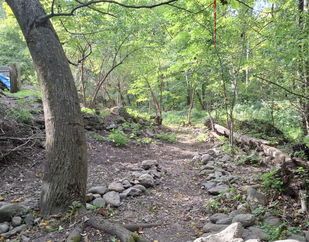✅ Garden (1618 m²) with canal irrigation. The top terrace overlooks the old orchard. These private plots lead to the forest and river. A large, vaulted storage cave for bikes, garden furniture, equipment, tools etc.