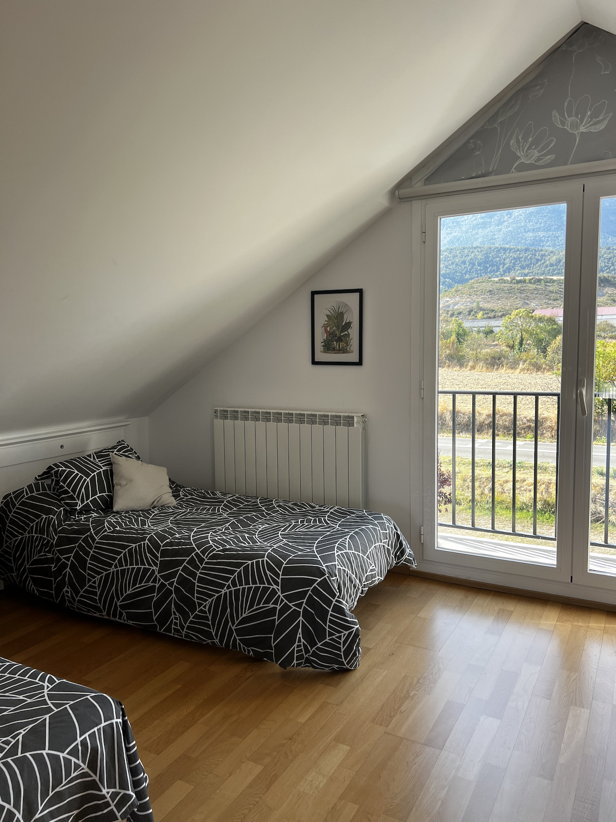 Charming house in a sunny and pleasant village of the Aragonese Pyrenees, surrounded by mountains and historic villages, perfect for rest and tranquility. This home offers the perfect blend of comfort, tranquility, and natural beauty. It is an idyllic retreat for relaxation and peace of mind. Having breakfast on the sunny terrace or reading a book in the peaceful garden is priceless.The property forms part of a private residential complex with two swimming pools to enjoy and relax. Ideally located just minutes from Jaca, 25 minutes from France, and an hour from Pamplona, it also lies along the renowned Camino de Santiago, offering effortless access to cultural landmarks and historic treasures.