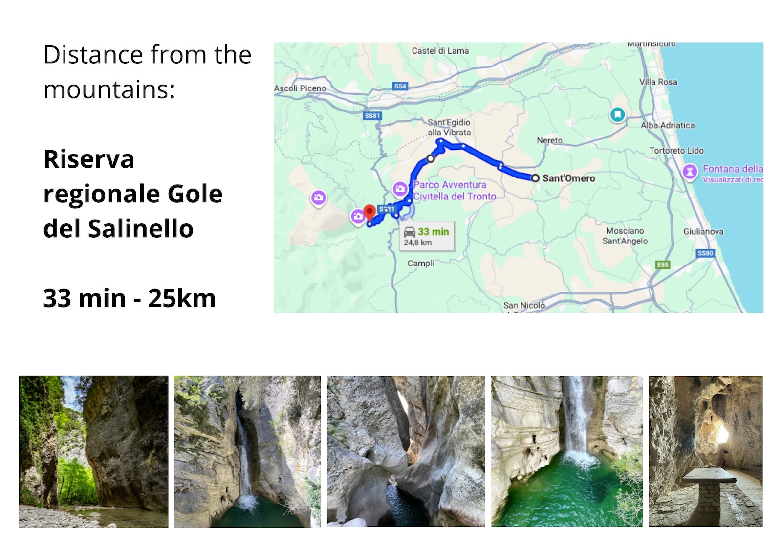 - 20 km by car from the mountains Gole del Salinello and Reserve of Civitella del Tronto
