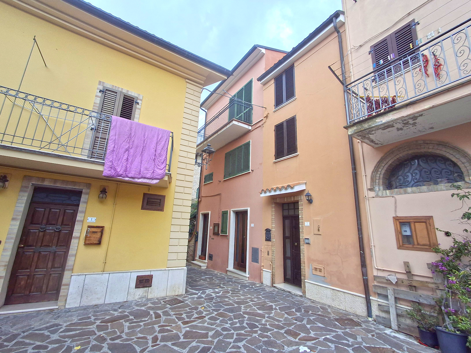 In the heart of Sant’Omero’s historic center, within the ancient walls of the “castello,” we are delighted to offer for sale a beautiful detached villa of 209 sqm arranged over three floors, featuring unique character and panoramic outdoor spaces.