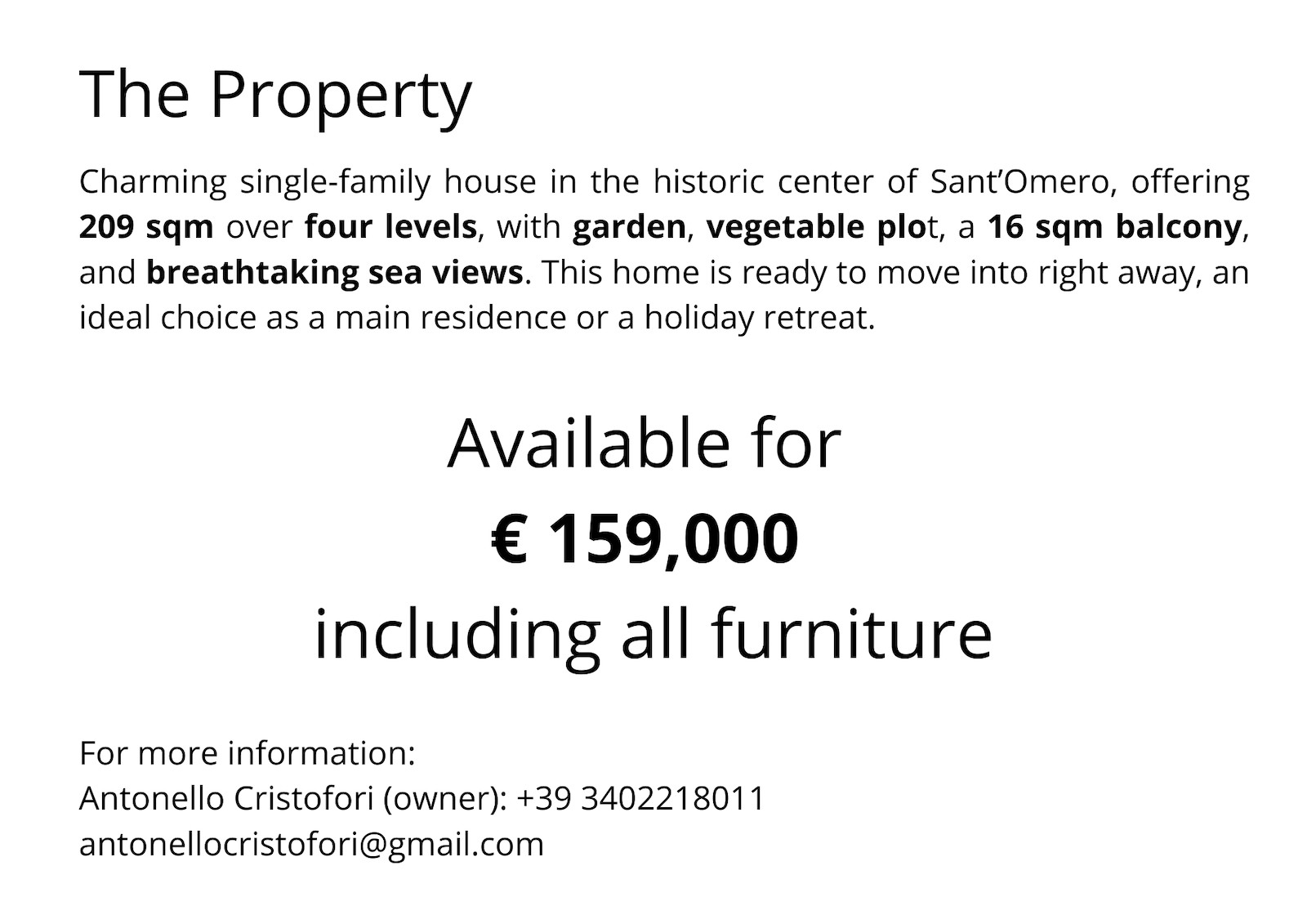 Available for € 159,000 including all furniture.