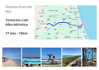 - 15 km by car from the Adriatic Sea beaches of Tortoreto Lido, Alba Adriatica