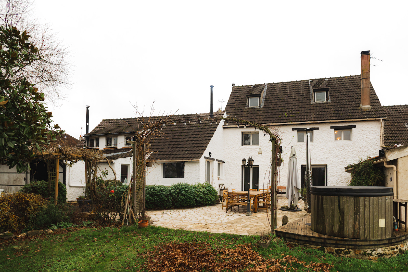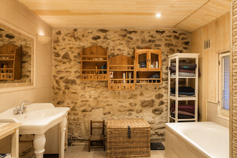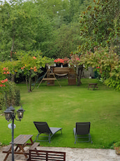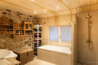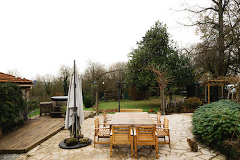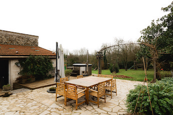 Large stone house currently separated into 2 residences (easy to rejoin) standing on 2700m2 land - Includes 70m2 patio with hot tub & BBQ, vegetable garden, hen house and children's wooden play area.Main house: approx 220m2 - central heating