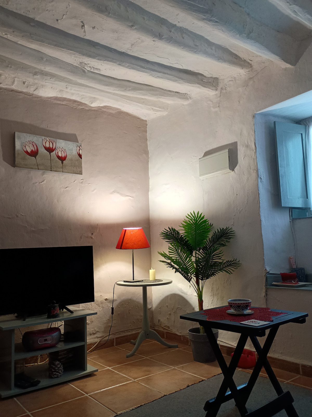 This charming property, covering 56 sqm, offers an impressive blend of traditional and contemporary features. The original beams contribute to the overall character of the home, while the air-conditioned bedroom ensures comfort throughout the year.The home is ready to move into as it is fully furnished. The lounge contains..sofa bed,-(double), chair, bistro table and chairs ,side table and lamps TV and stand