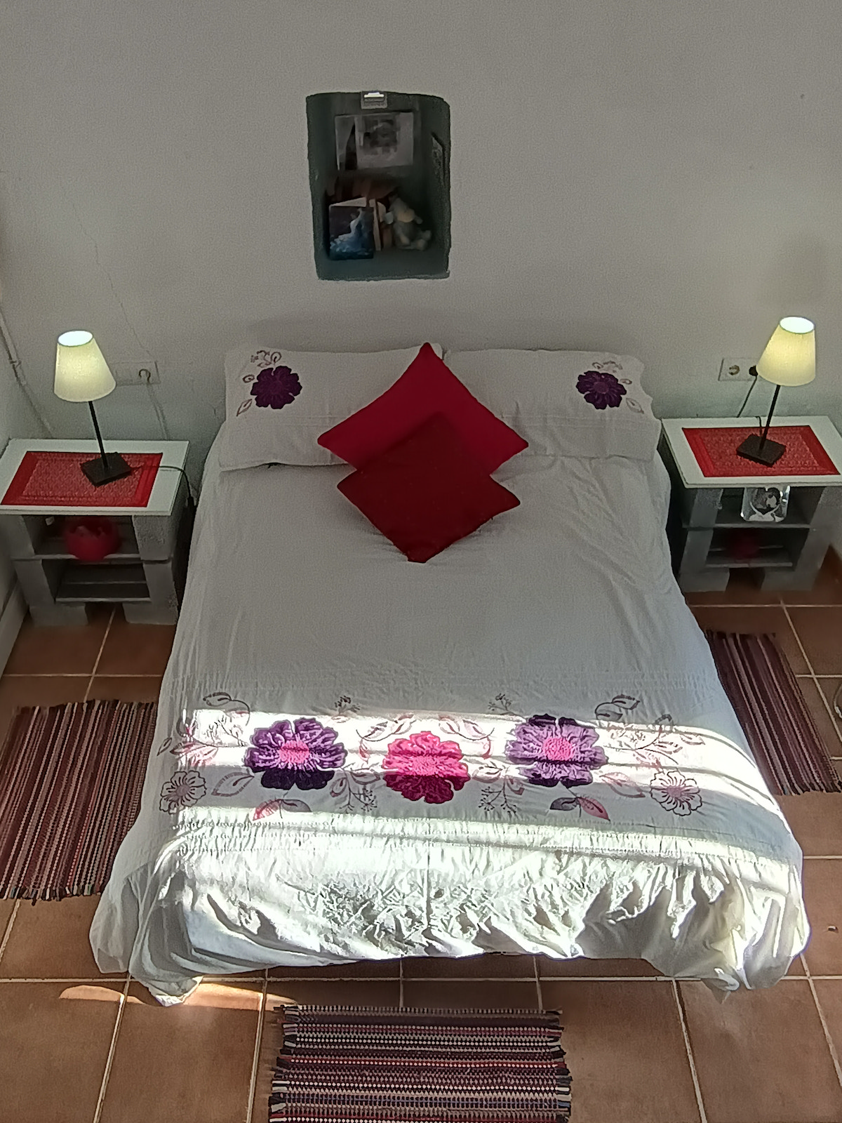 The bedroom has a large double bed with space for an extra single...air conditioned plus double wardrobe and drawers.