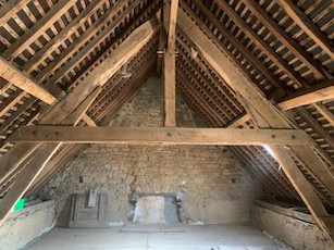 Current floorplan layout: Front entrance to Kitchen/lounge area approx 3.8m x 4.8m with fireplace and wood burner. Double glazed front door with security roller shutter. Brick arch fireplace with wood burner, chimney has a flexible metal flue liner. Chimney swept 25/2/2026. Kitchen area comprises of worktop, cupboards under and sink with H/C water, tiled splashback. (The room is an easy conversion to large lounge once the stud wall to bedroom has been removed). Door to bedroom approx 3.5 m x 4.8m. Double glazed window with shutters and double glazed French doors with shutters and external steps onto front decking area. Access to roof space of approx 7.3m x 4.8m, perfect for conversion by means of fitting stairs or spiral staircase to first floor and creating, a small landing area with low level window, a large main bedroom, guest bedroom and bathroom. Beautiful vaulted beams and a closed stone fireplace.
