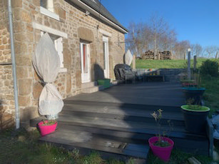 The property also benefits from: Large 8.5m x 4m composite anti-slip front entrance decking area in anthracite grey with grey edging stones and seating/flower bed area. Tiled steps to front door and bedroom French doors.