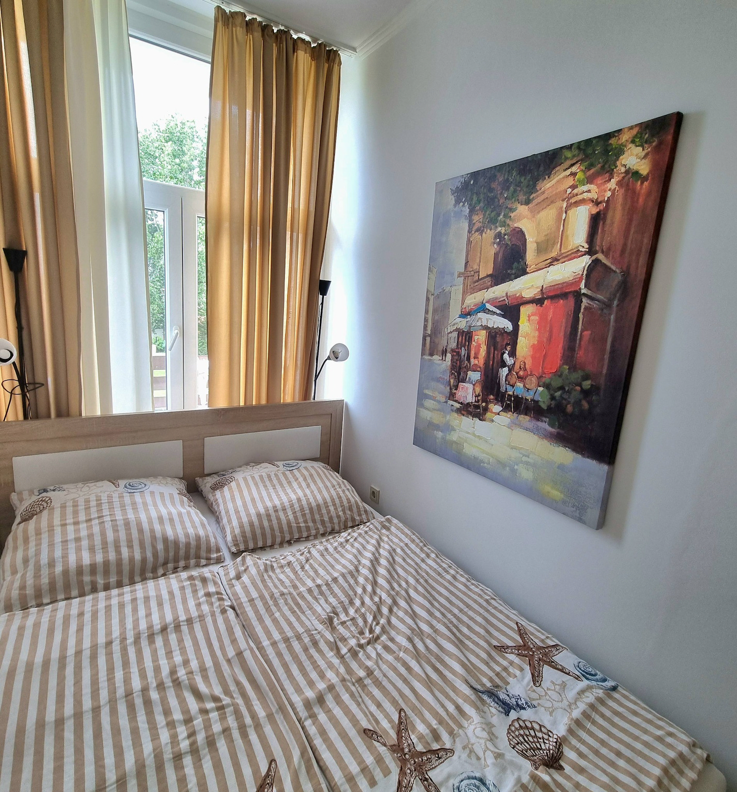 The air-conditioned apartment is spacious and bright.