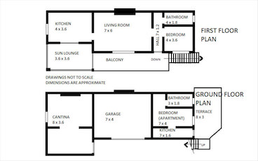 On the ground floor there is a self contained studio apartment with holiday rental potential. It consists of a fully equipped kitchen/dining area, a large bedroom with space for a double and 2 single beds, chests of drawers and wardrobe space. the bathroom is en suite with a toilet, bidet, washbasin and full sized bath with shower.