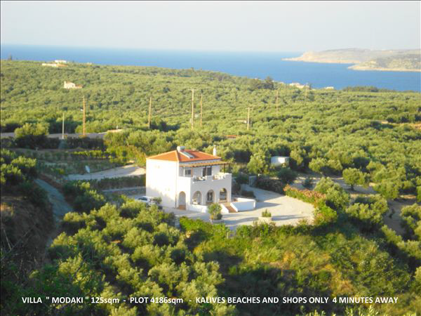 This Cretan south facing spectacular 125 sqm villa is situated in an elevated location with absolutely breathtaking, unobstructed 180deg views to the White Mountains and Draponas Hills and lush country side, the surrounding olive groves and distant local villages. THESE VIEWS CAN NEVER BE LOST. It is the perfect tranquil retreat..The Blue Flag white sandy beaches and Kalives Village centre are only 4 MINUTES AWAY from the villa.