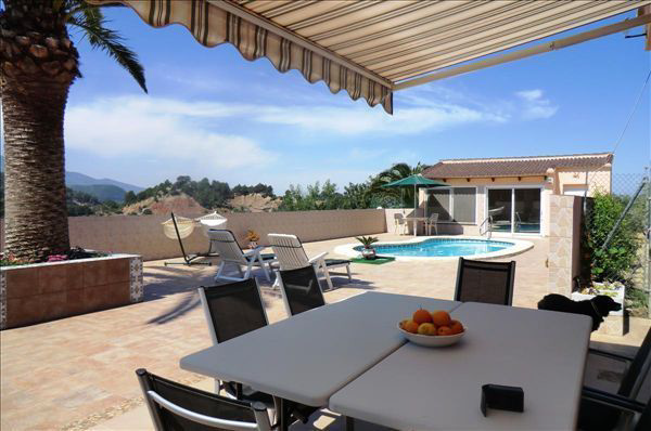 The dining room/summer lounge - 6.47m x 2.64 m (21ft 2in x 8ft 6in) has an exit to and over looks the completely private pool terrace area, with amazing views to the Benciadell
