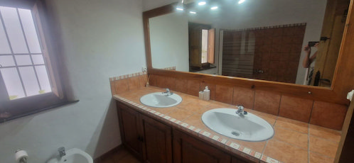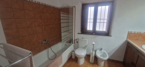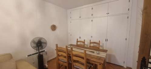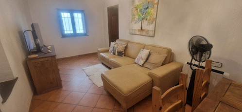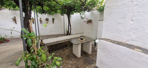 There is also access to a beautiful outdoor seating area to catch the sun or relax under the shady vines and a large roof terrace with mountain views. It has lots of storage space/wardrobes/cupboards, very spacious lounge/kitchen/family bathroom, double master bedroom, twin room and bunk bed room. Stairs up to huge roof terrace.