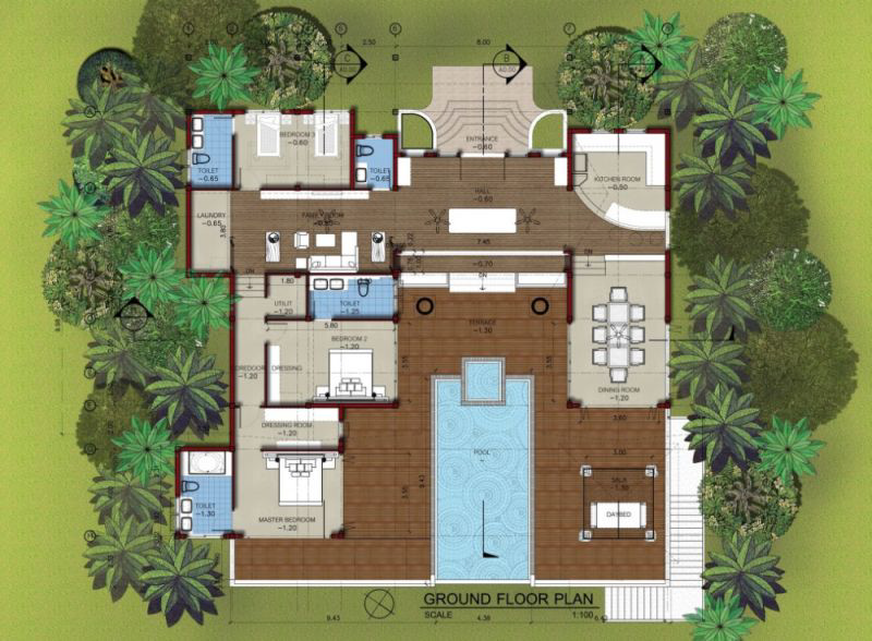 The uniquely-created Master Bedroom Suite and Bedroom #2 have direct access to the swimming pool (4m x 10m, which features a 4m2 children’s splash pool) and a submerged bench ideally placed at the deep cantilevered-end for guests to sit and soak themselves in to the tranquil surroundings.