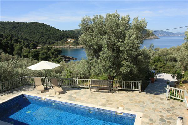 Villa AquiloThis beautiful Pelion roofed and chestnut beamed 3 bedroom property with swimming pool was built in 2008. Aquilo is set in 5315sqm of mature olive grove on the west coast of Alonissos in an area known as Megali Ammos with stunning views out to sea and over towards Skopelos.