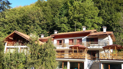 This property includes a five-bedroom house with two kitchens and bathrooms, located adjacent to the Central Balkan National Park.