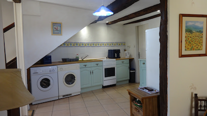 Traditional French semi-detached house, built in 1752, includes two large bedrooms, an upstairs bathroom, lounge with log burner, and kitchen/dining room.