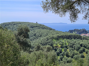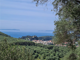 Land property situated 4km from the city centre, offering sea views and proximity to the beach. It comes with a water line, potential for building, and is adorned with olive trees.